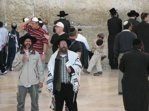 У стены Плача левая сторона предназначена для молящихся женщин, а правая сторона -для мужчин. От захода солнца в пятницу и до захода в субботу весь день бывает много евреев молящихся, празднично одетых, и ортодоксов, одетых в все черное, на площади перед Стеной Плача. Стена Плача - это все, что осталось от второго храма, который построил царь Ирод. Свое название эта часть стены получила в связи с тем, что в 70 году, когда римский император Тит разрушил храм и весь город Иерусалим, именно здесь евреи оплакивают гибель своей святыни